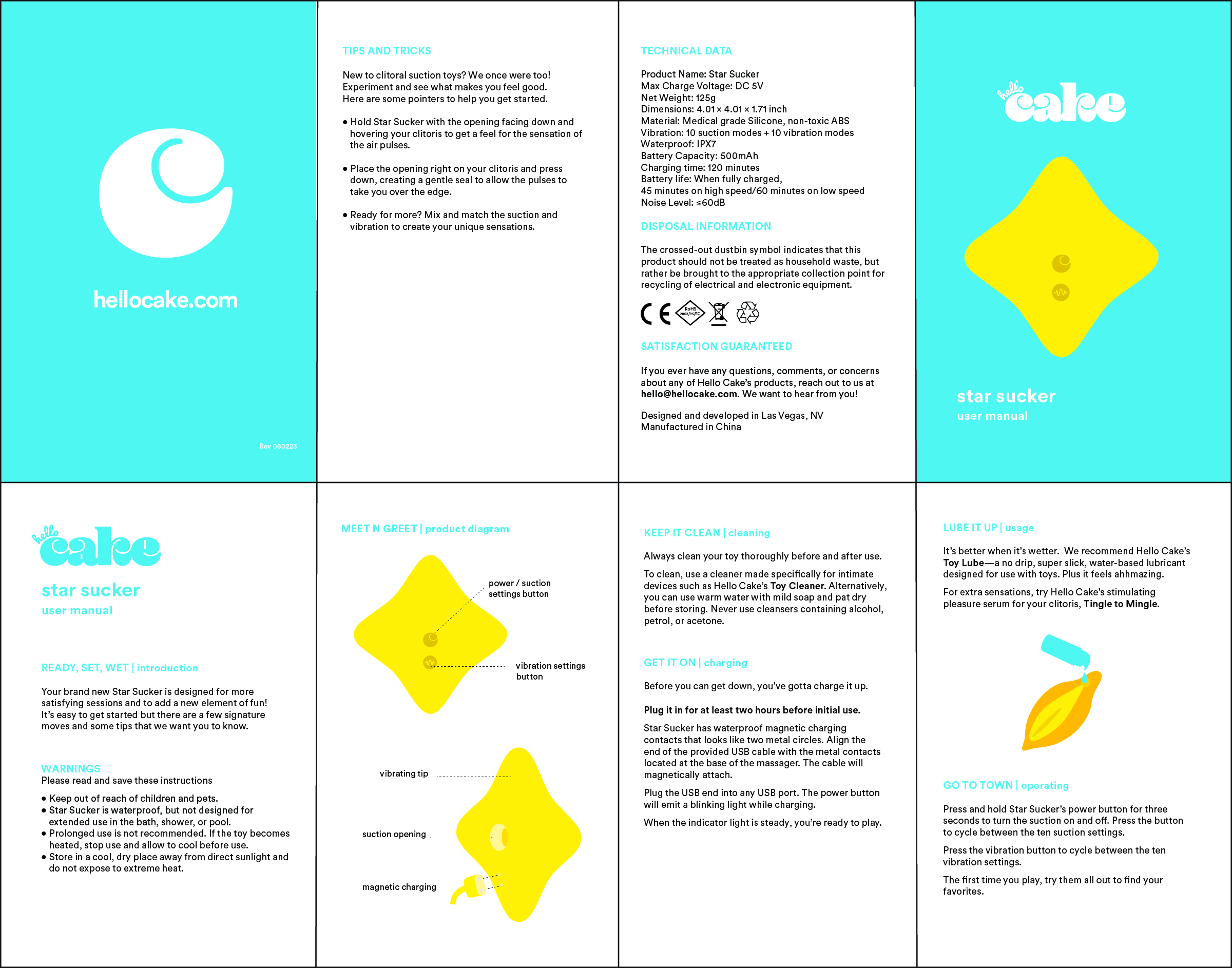 Caution: Star Sucker is waterproof, but not designed for extended use in the bath, shower, or pool. Prolonged use is not recommended. If the toy becomes heated, stop use and allow to cool before use. Store in a cool, dry place away from direct sunlight and do not expose to extreme heat.
